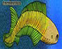 This animal had a narrow,tubular shape,with along fin on its back, a pair of lateral fins running along its flanks and a small anal fin. Uplift was produced by the strongly downturned tail.