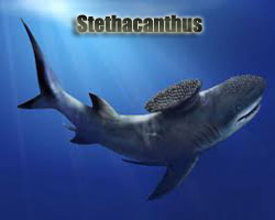 The notable mark of this early shark was the strange adaptation of the first dorsal fin. It was anvil TV shape and the flat,uppersurface bristled with deathlike tentacles.The top of the head was also covered with tentacles.