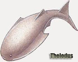 The mouth of this small thelodontid was on the underside of its flattened head, which suggests that it fed on the seabed. But it could obviously swim well also. The lower lobe of the tail was elongated, and fins were developed for stability - a dorsal and an anal fin at the rear, and 2 pectoral flaps at the front.