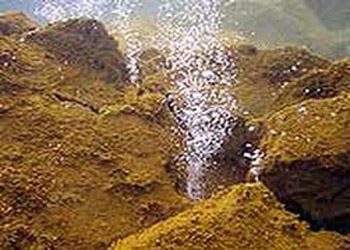 The Banua Wuhu submarine volcano in the Sangihe Islands rises more than 400 meters from the sea floor to form a shoal less than 5 meters below sea level. Banua Wuhu is an active submarine volcano. It is a parasitic element on the north western side of adjacent Mahenetang Island. Banua Wuhu is an intermittently emergent pustule of known volcanic and shallow hydrothermal activity. Gas bubbling, sub-surface sonic activity and venting of hydrothermal liquefied with temperatures around 50°C are known to occur on the zenith at around 10meters depth. A 90 meters high island was formed in 1835, but then dwindled to only a few rocks in 1848.